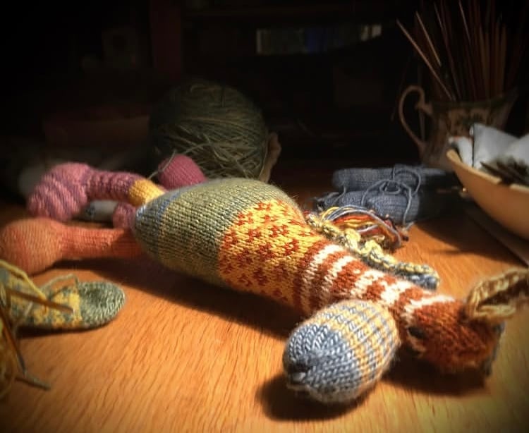 You will need app. 30g of any sock weight yarn, any color you like it. Stuffing about 30-40g, some black yarn for eyes and tapestry needle. All animals are knitted on double pointed needles, they are knitted in rounds.