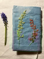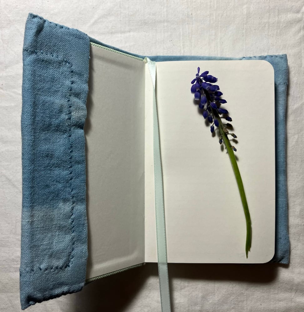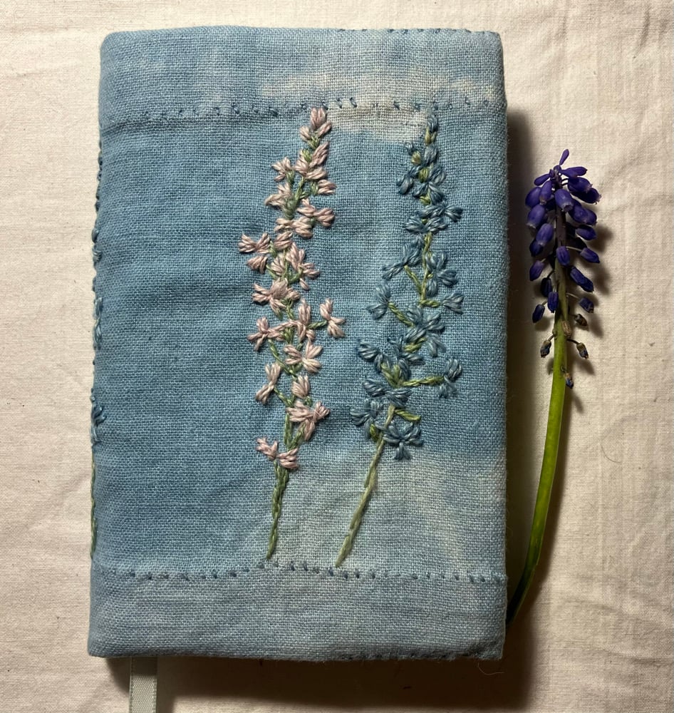 I used old soft cotton bed sheet, dyed with indigo and embroidered with flowers.